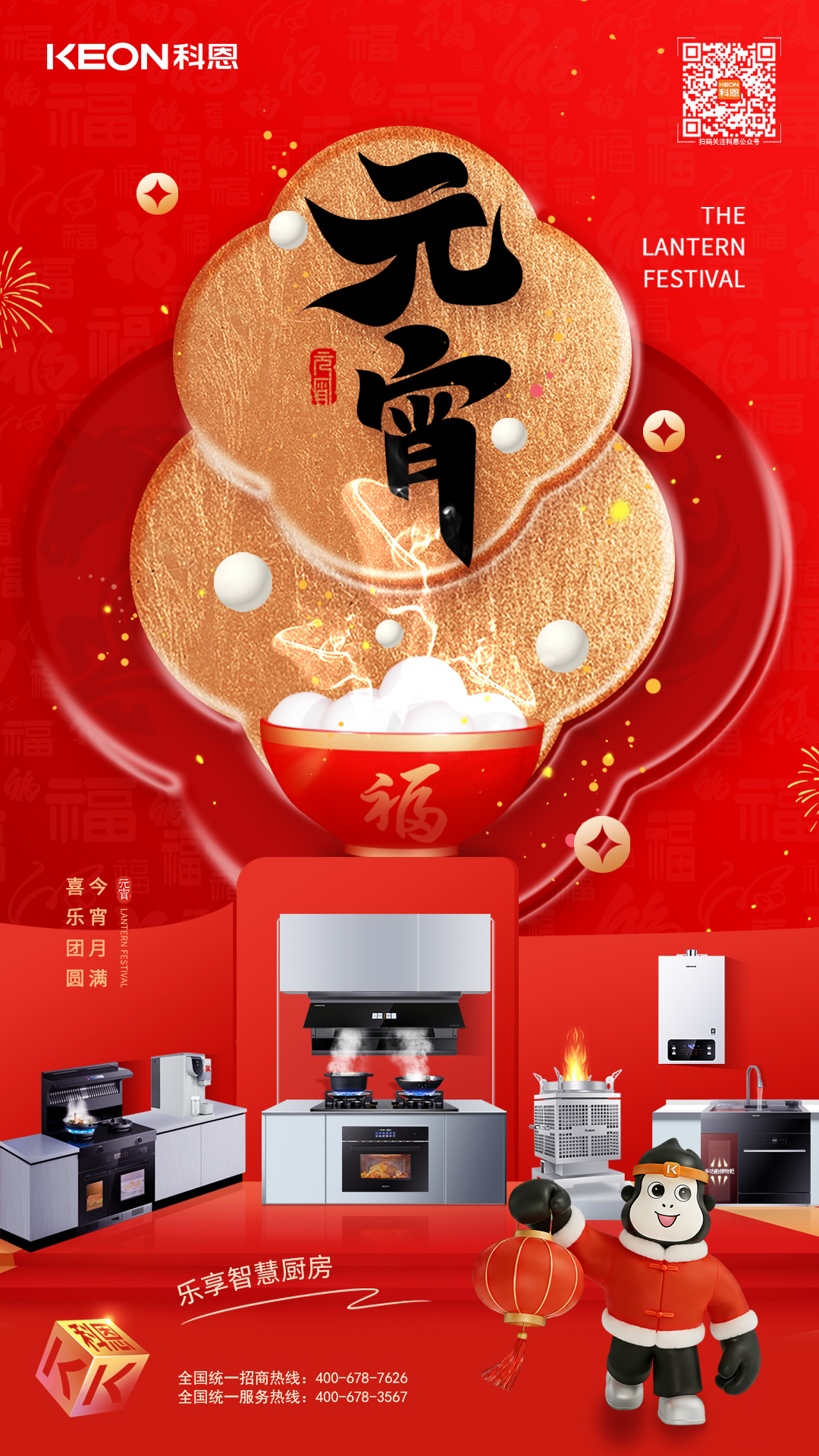 正月十五元宵至,花灯映月庆团圆。厨房作为年味聚集地,此刻正上演着煎炒烹炸的热闹景象,汤圆的甜香、菜肴的鲜香交织成幸福的味道。但油烟弥漫、火候难控等烦恼,往往冲淡烹饪愉悦。科恩厨电以科技赋能,让无烟健康与美味团圆兼得,让每个家庭都能自由呼吸间,畅享元宵盛宴。
