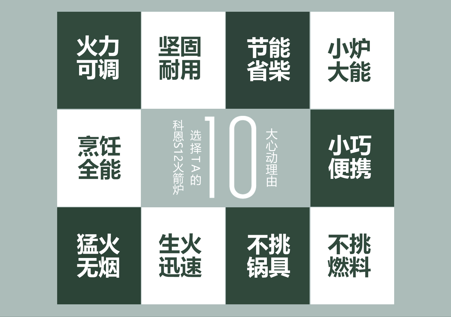 无烟猛火,畅享秋味。不锈钢镂空支撑脚,内收折叠,稳固承重,近郊野餐高效率,S12速烹超给力。重新定义野炊法则,携科恩火箭炉S12,来一场秋日短途出行,轻便与实用全都拥有,一机打造移动米其林厨房。