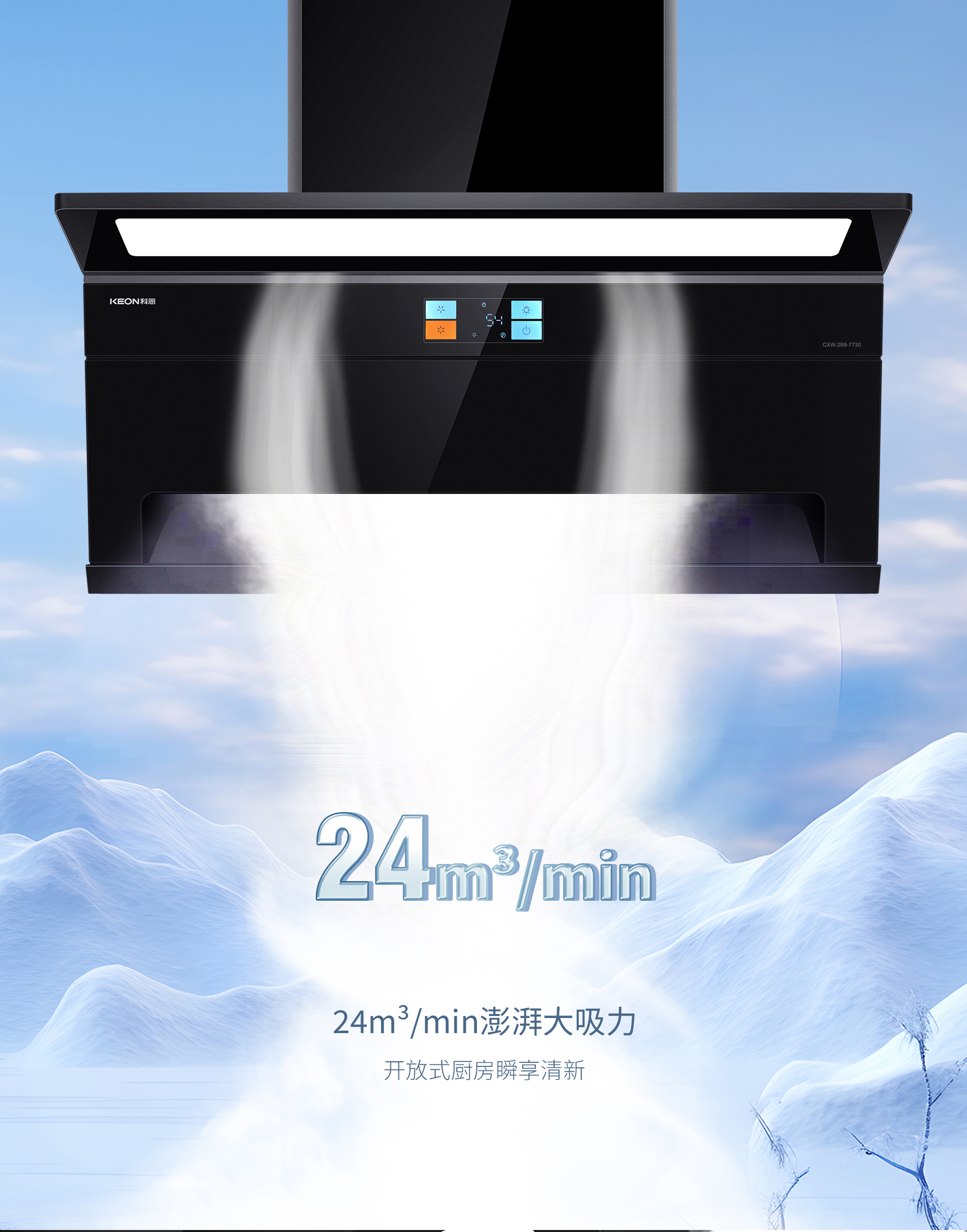 净烟实力,守护呼吸健康。24m³大吸力瞬吸无踪,开放式厨房不怕跑烟,顶侧双吸1+1>2双重锁烟。1000Pa强劲风压,烹饪高峰拒绝油烟倒灌,负压区内倾滑翔设计,油烟顺势直排不滞留,3分钟延时关机,烹后余烟一网打尽。