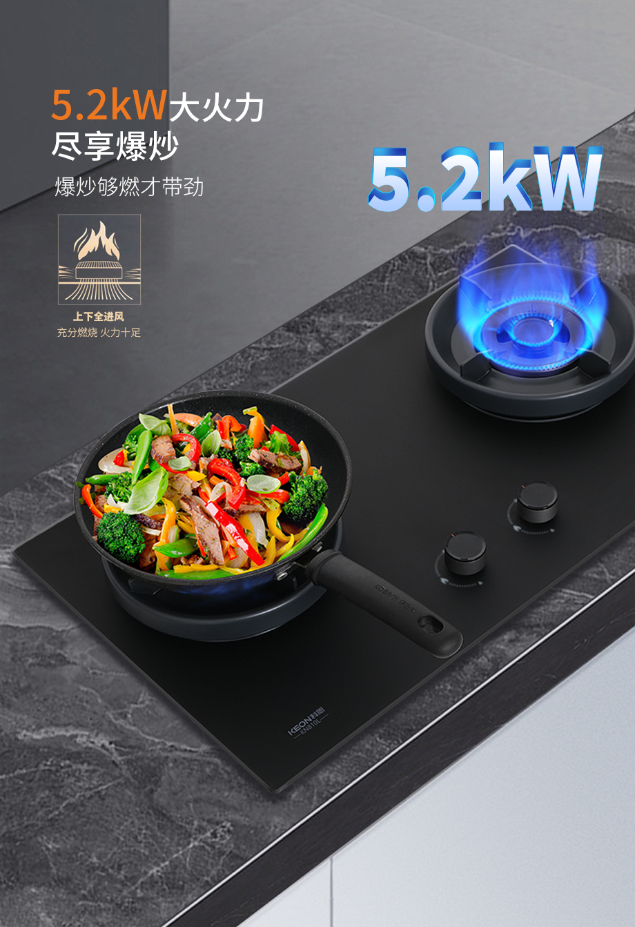 火力随心,拿捏中式烹饪。5.2kW大火力锁牢食材鲜香,170°宽域调火,慢炖蒸煮各得其所,环抱式聚能环防风聚热,火力全开从容掌控各式烹饪。68% 一级热效率,节能省气不心疼。