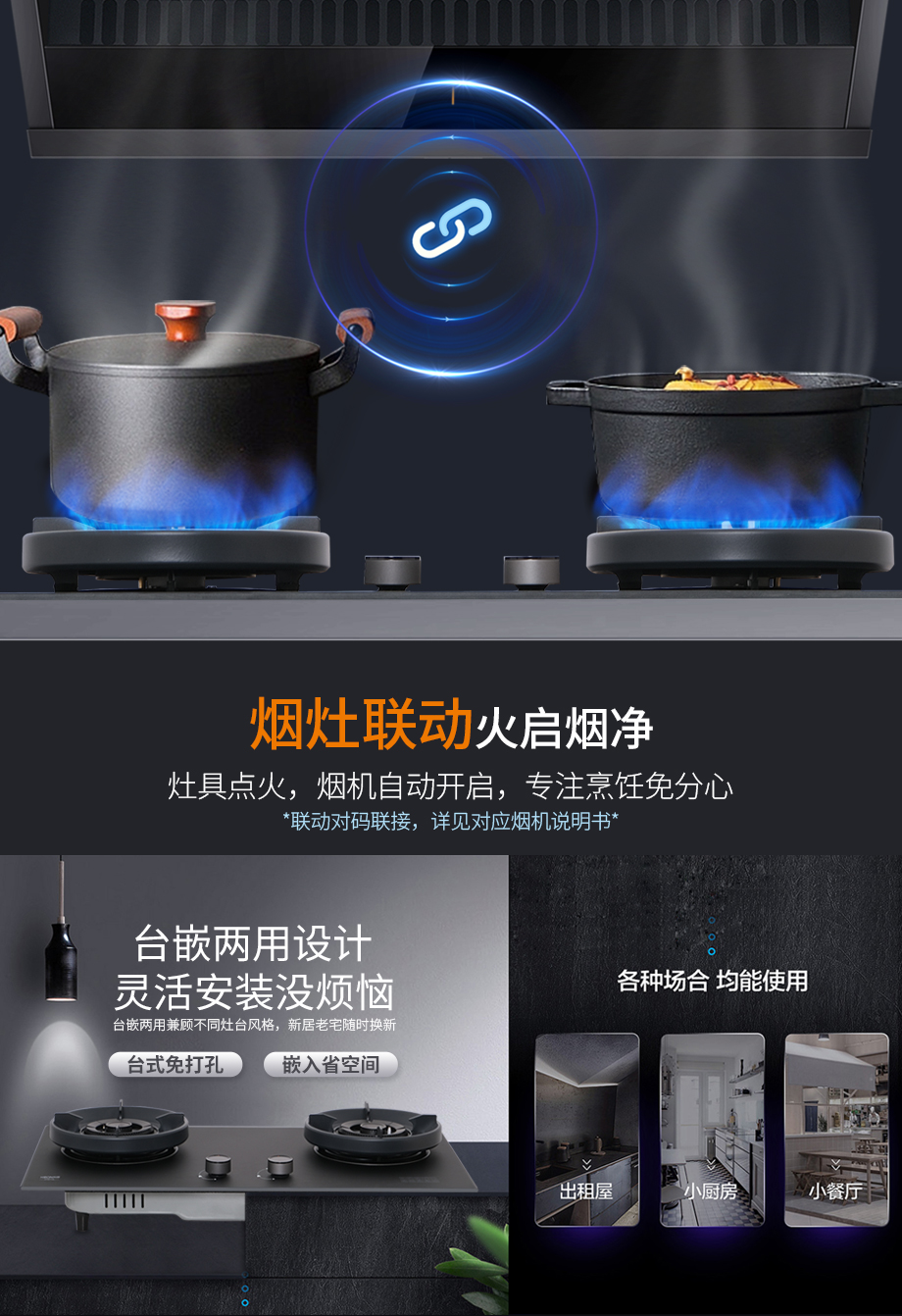 轻松换装,适配老房厨房。小板灶设计多尺寸适配,轻松换装不折腾,亚膜水雾钢化玻璃台面,油砂纳米工艺防粘,汤汁滴落一擦即净,清洁无忧,懒人也爱下厨。