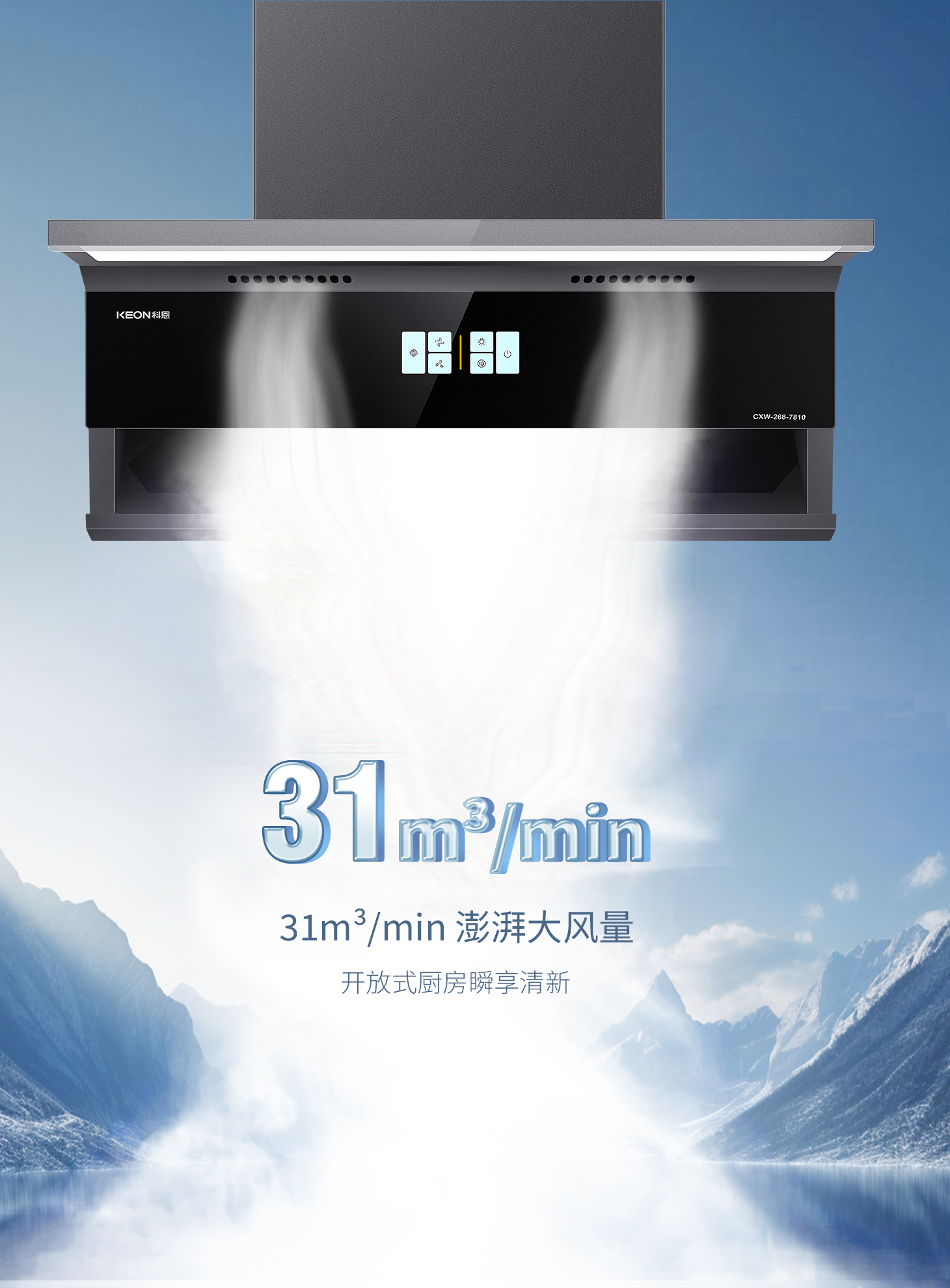 净烟神速 颜值担当。新年爆炒,油烟无踪,3秒清场,全域拢烟,1350Pa变频风压,排烟顺畅。2.5cm轻薄机身,冰川灰镶边,天鹅颈设计,释放开阔空间,挥手智控,净烟不沾油污。易洁省心 健康相伴。特氟龙工艺,油污不粘。智旋清洗,吸力持久强劲。3分钟延时关机,余烟尽除,IP67全景天幕,护眼清晰,模块化触控,操作直观简单,0.5立方大空间,翻炒不碰头。