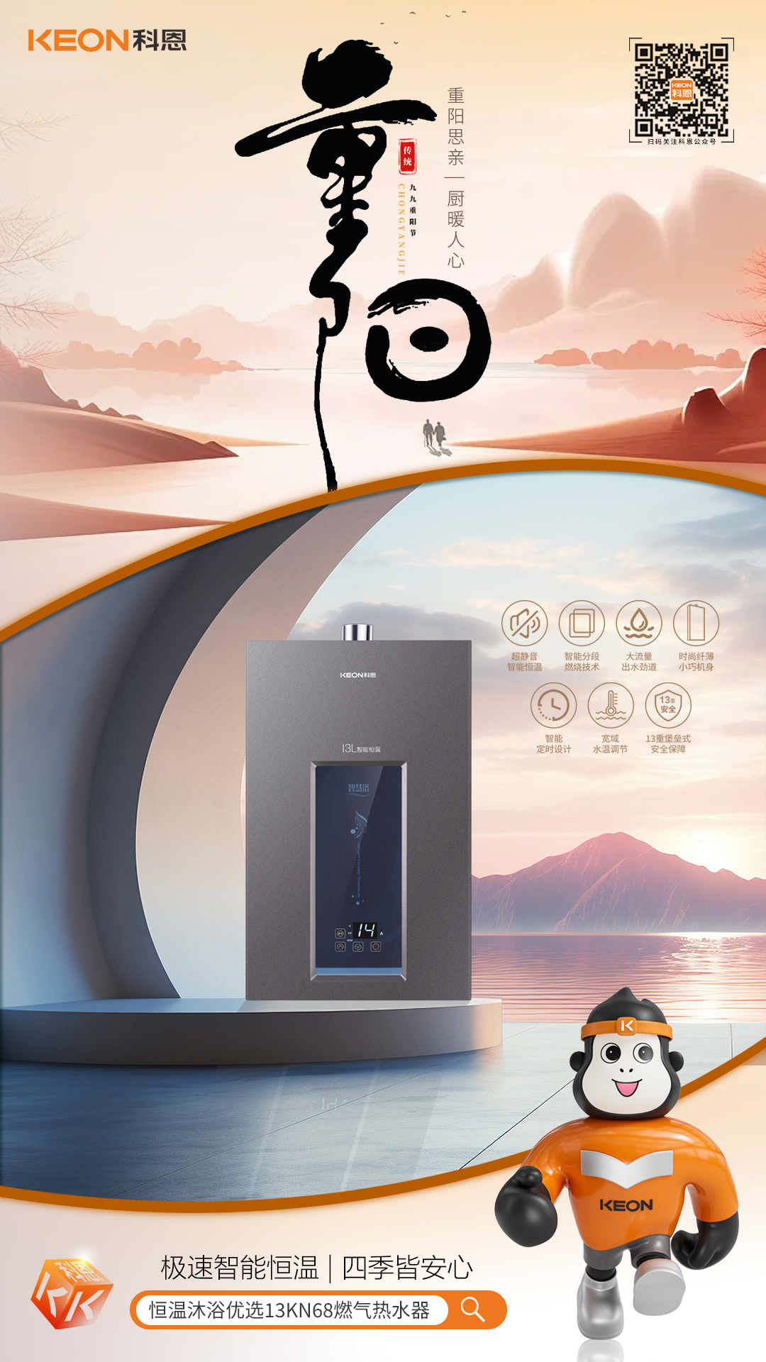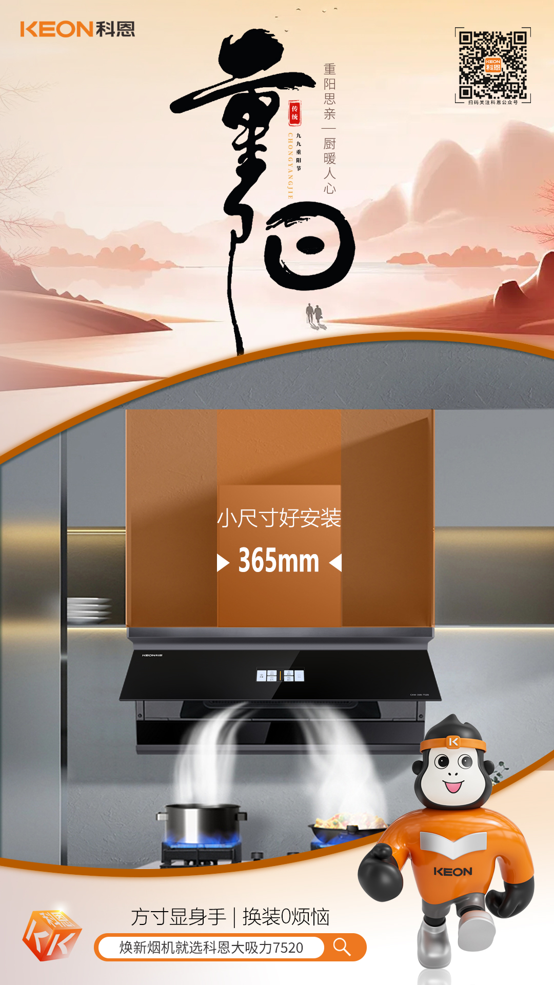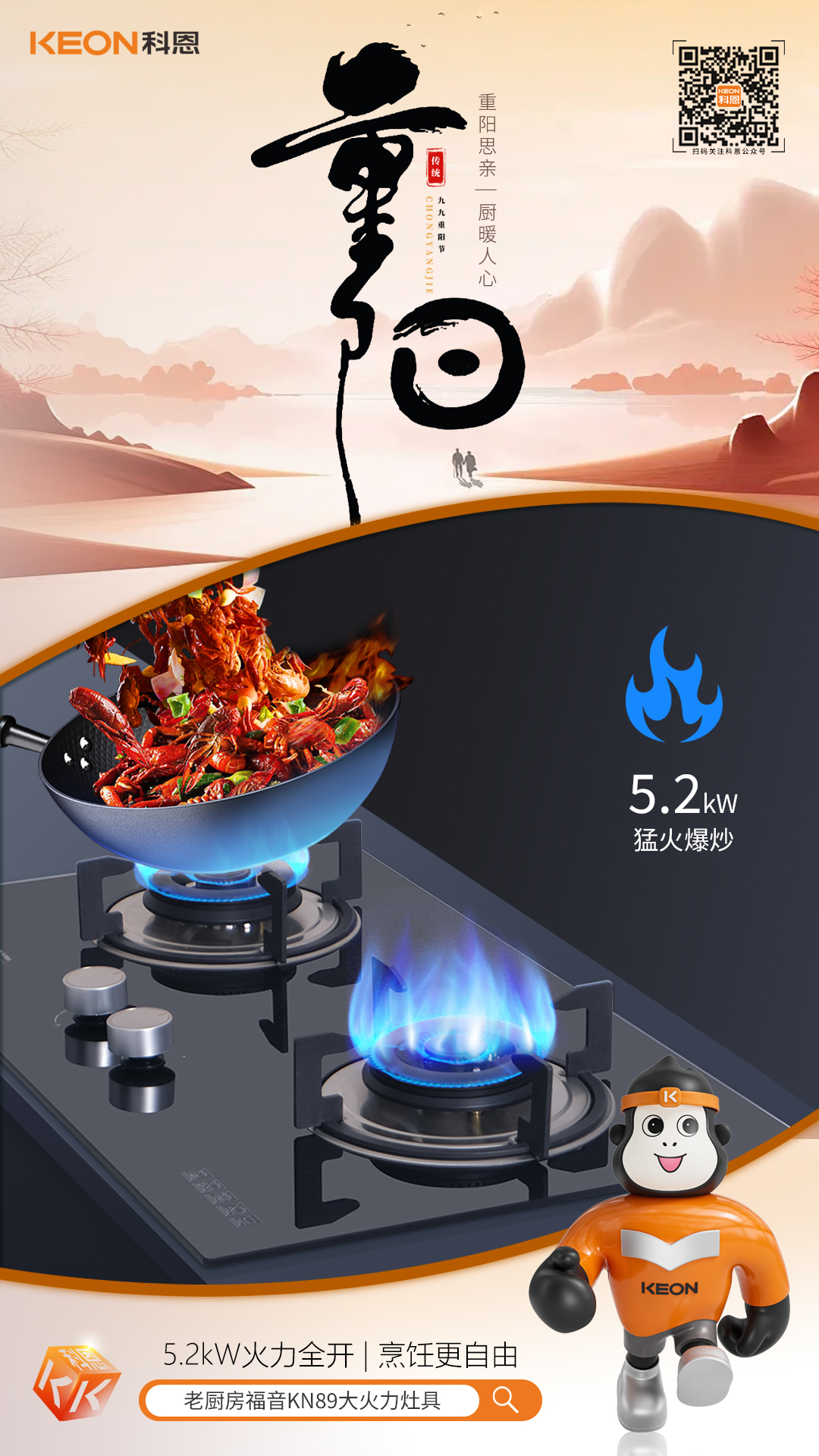 重阳又至,秋意渐浓。登高祈福,赏菊饮酒,孝心绵长,厨房烟火,承载三代温情。一套省心厨电,让团圆滋味更圆满,把对长辈的爱,藏进每一顿餐食里。科恩厨电助你打造,一个舒适、便捷、安全的厨房环境,让孝心在厨房中绽放。