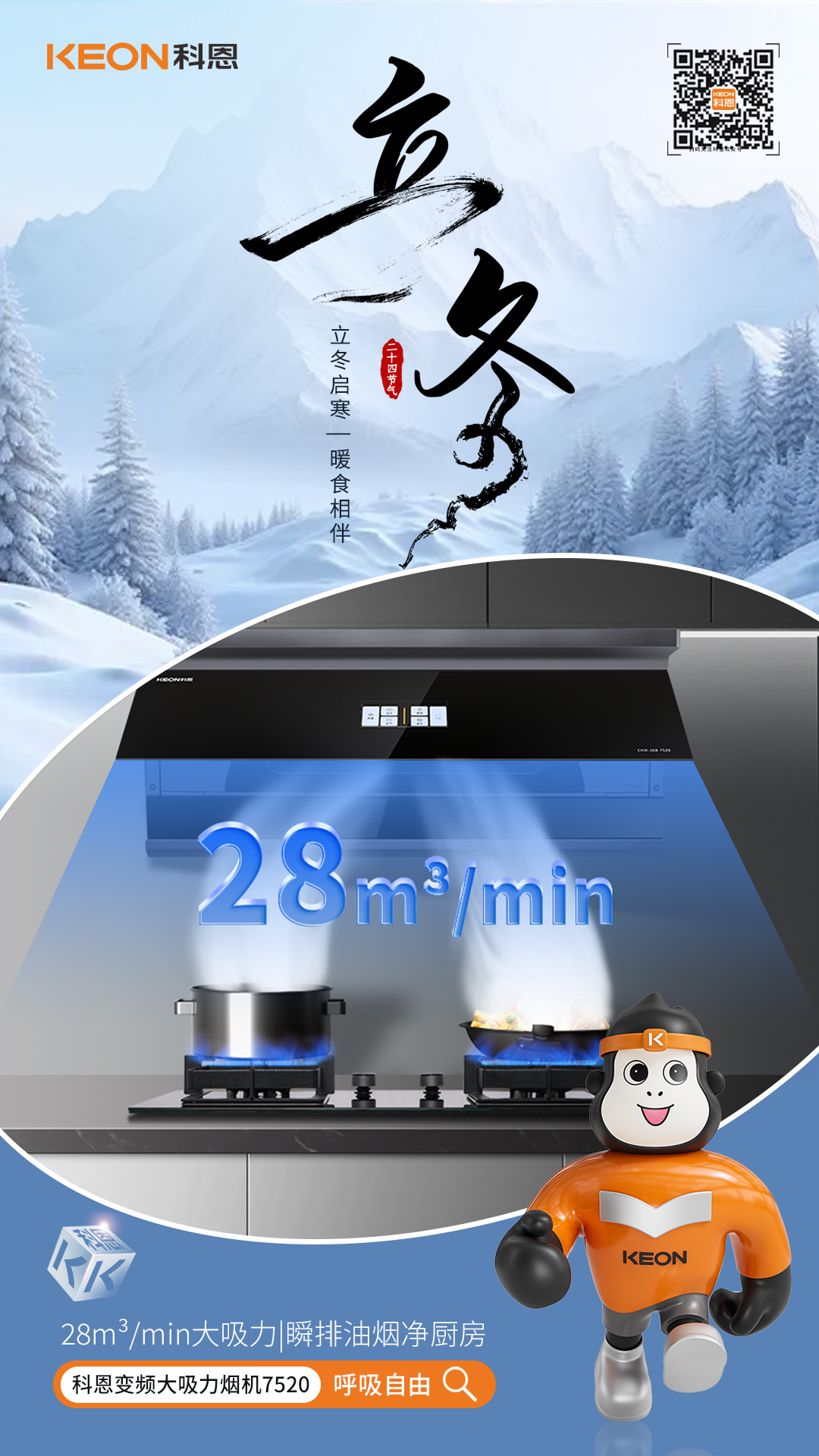 旧厨焕新,暖厨无忧。立冬暖味需好器,厨房焕新正相宜,科恩电器全程相伴,打造智能健康新厨房。让厨房暖起来,让美味不等待,共度暖冬好食光。