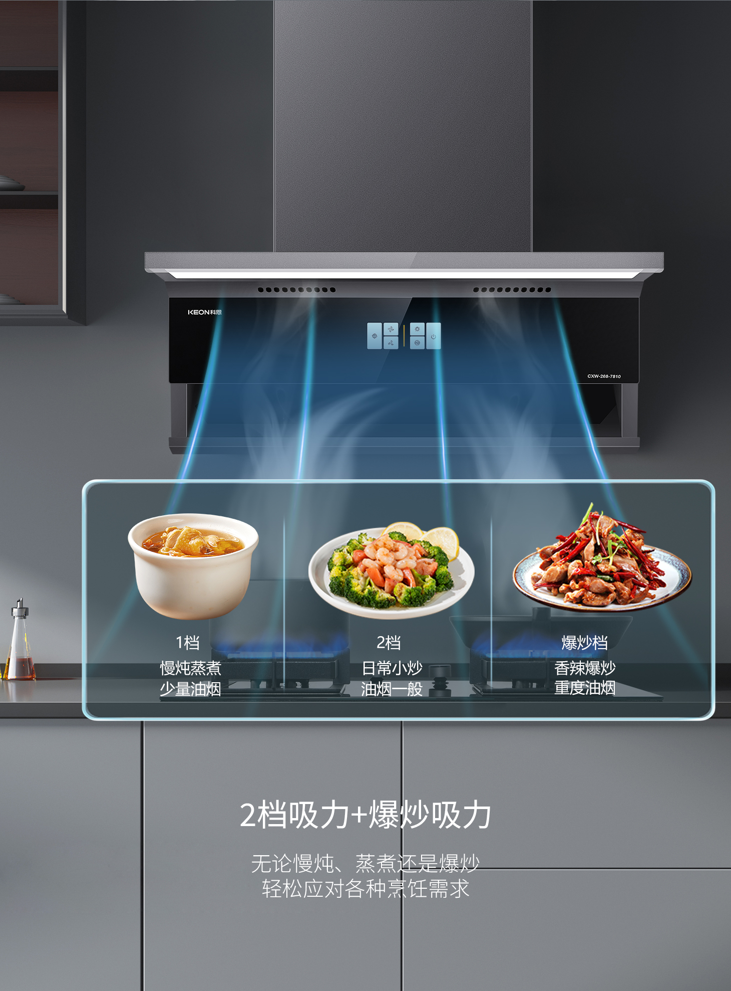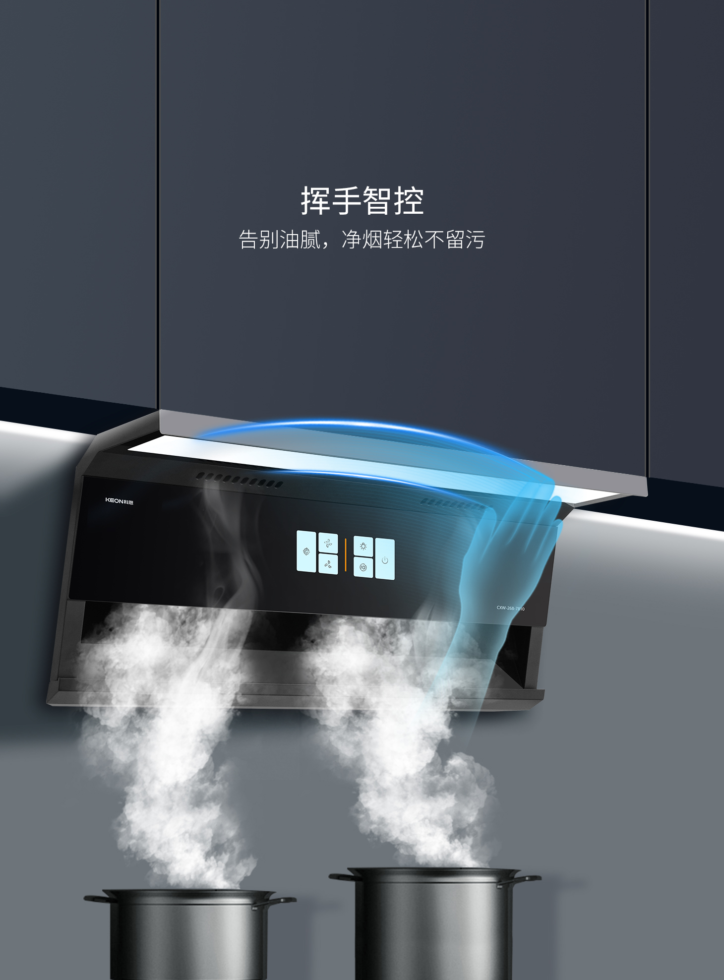 净烟神速 颜值担当。新年爆炒,油烟无踪,3秒清场,全域拢烟,1350Pa变频风压,排烟顺畅。2.5cm轻薄机身,冰川灰镶边,天鹅颈设计,释放开阔空间,挥手智控,净烟不沾油污。易洁省心 健康相伴。特氟龙工艺,油污不粘。智旋清洗,吸力持久强劲。3分钟延时关机,余烟尽除,IP67全景天幕,护眼清晰,模块化触控,操作直观简单,0.5立方大空间,翻炒不碰头。