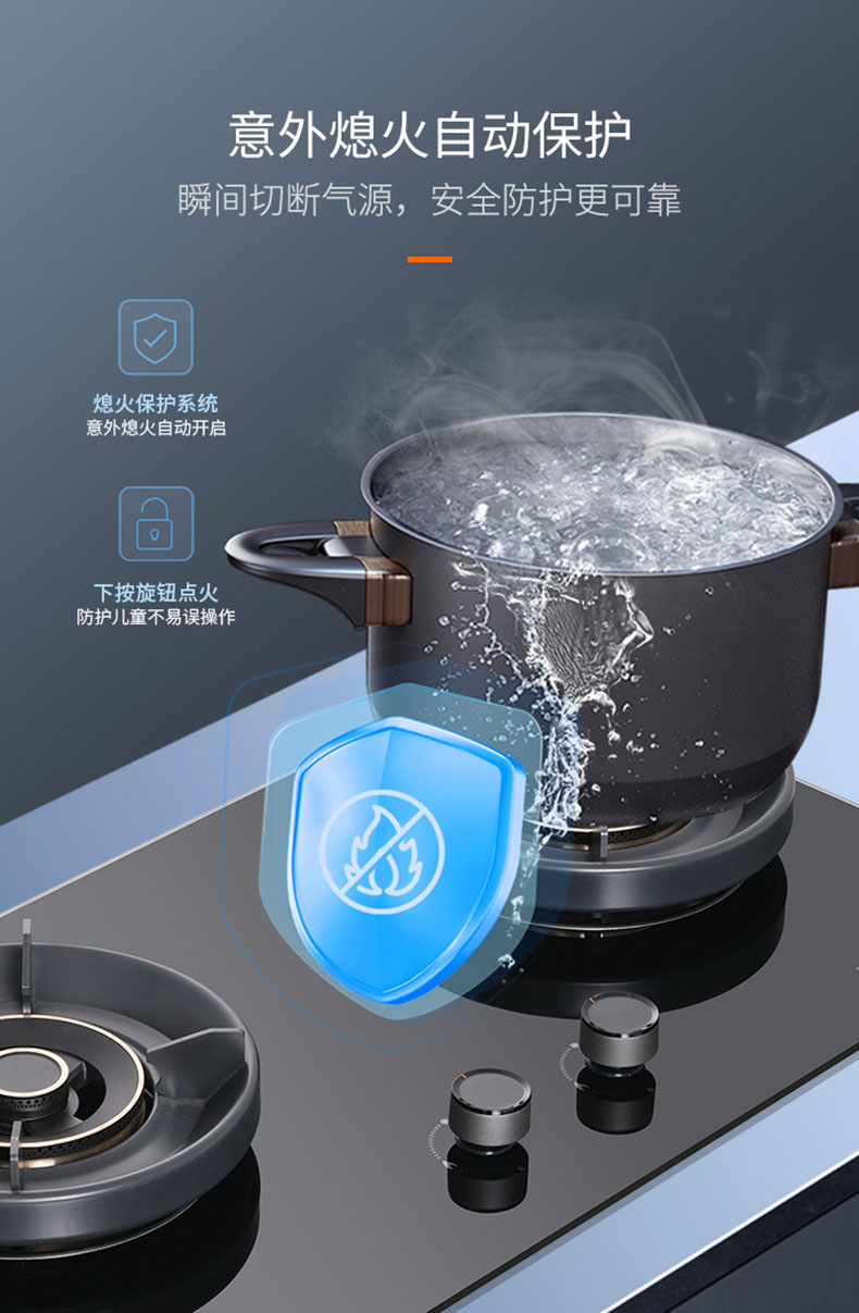 - 意外熄火保护,火灭即刻切断气源,安全防护有保障