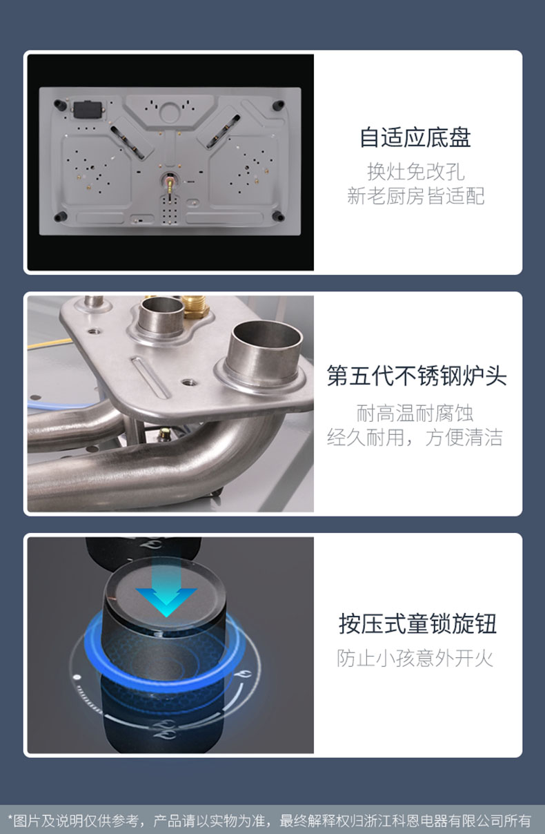 - 自适应底盘,换灶免改孔,新老厨房皆适配