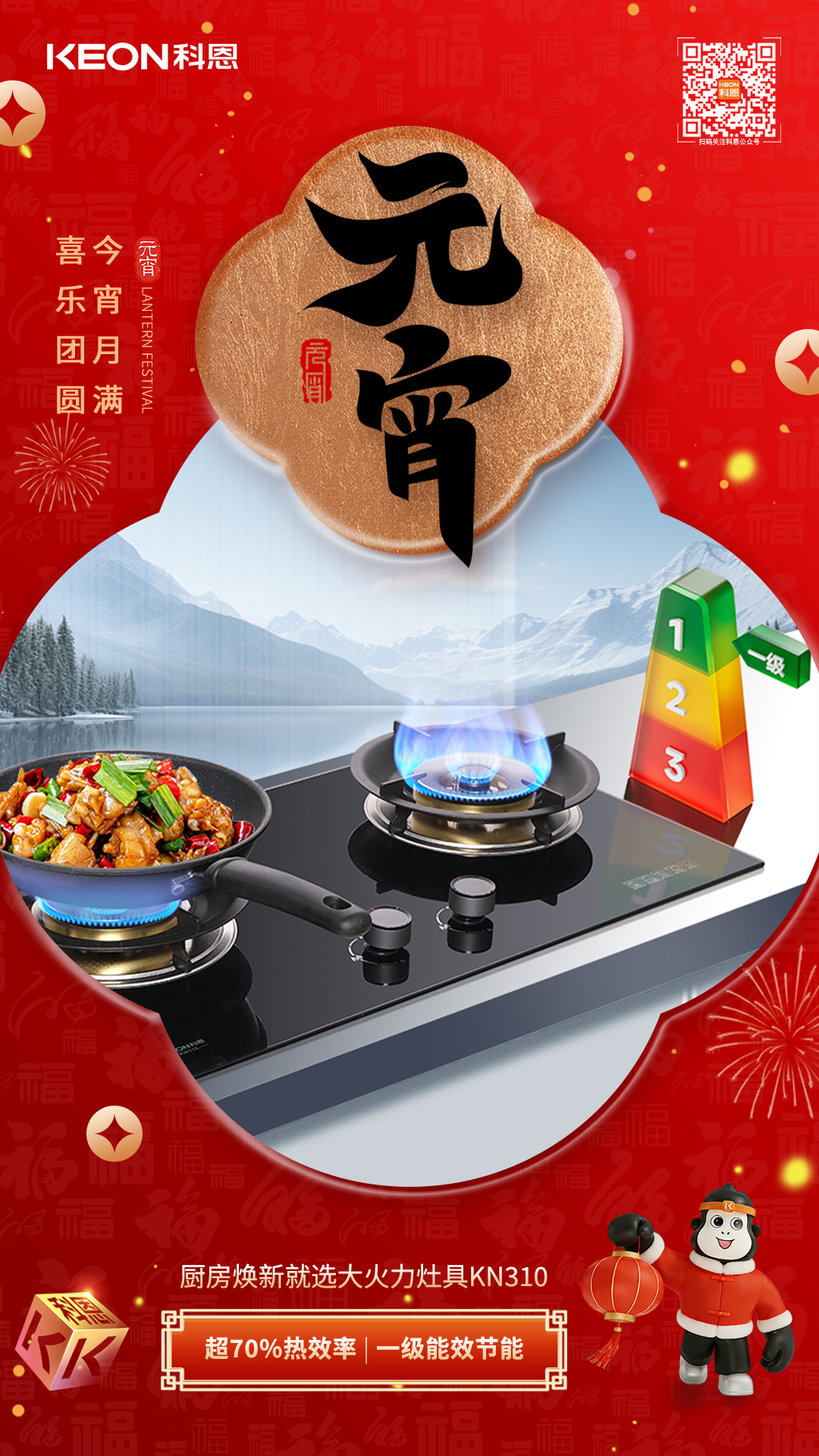 从无烟烹饪到恒温热水,科恩厨电以科技赋能生活,用细节守护团圆。这个元宵,打造健康、安全、舒适的厨房环境,让你在烟火缭绕中自由呼吸,在美味佳肴中品味团圆,共度圆满元宵!