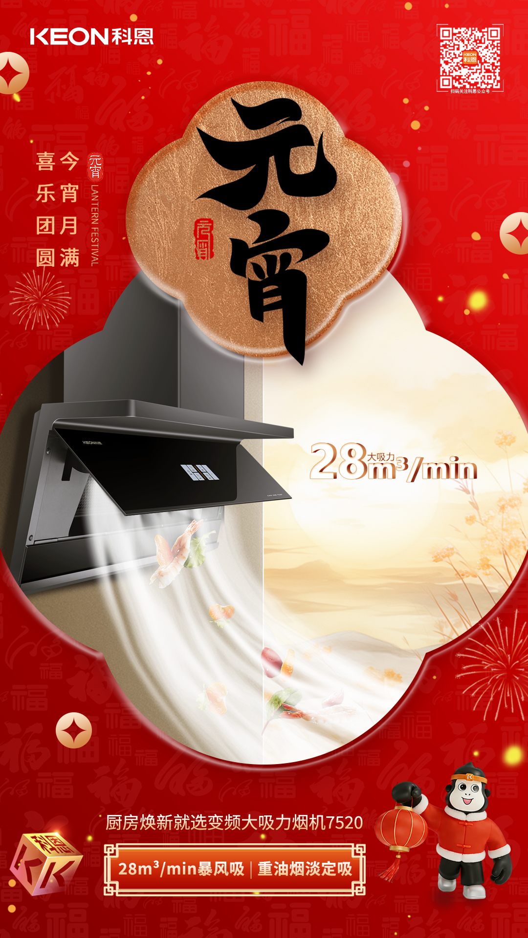 正月十五元宵至,花灯映月庆团圆。厨房作为年味聚集地,此刻正上演着煎炒烹炸的热闹景象,汤圆的甜香、菜肴的鲜香交织成幸福的味道。但油烟弥漫、火候难控等烦恼,往往冲淡烹饪愉悦。科恩厨电以科技赋能,让无烟健康与美味团圆兼得,让每个家庭都能自由呼吸间,畅享元宵盛宴。